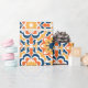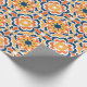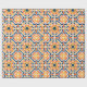 Chic verpacktes Papier mit Talavera Kacheldesign in Blau-, Orange- und Gelbtönen.