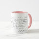 Diese Tasse kennzeichnet die ursprüngliche Handschrift von Talitha Ford, meine groß-große Großmutter. Ihr 1860sbrief zu ihrem Ehemann, der weg vom Kämpfen im zivilen Krieg war, beendet mit einem "P.S." Liebegedicht, das i-Set zu Musik-ein Lied für weibliche Stimme, Harfe und Violine-TALITHA'S LIED. Um eine Demo des Liedes sowie der Informationen über TALITHA FORD VON KENTUCKY zu hören, besuchen ein Einfrau Spiel, das ich schreibe, bitte www.talithafordkentucky.com.