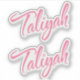 Taliyah-Name in hübsch rosa dekorative kursive Skript Schriftart Schrift, Schrift. Zwei Kopien.