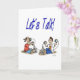 Lass’s Talk ist eine Grußkarte, um Freunde wiederzufinden. Lass’s Talk ist Steamy Raimon Original-Konzept und Cartoon-Kunst. *Cover: Junge und Mädchen, die über Spieltelefone reden ** drinnen: (absichtlich verlassen leere für Sie, um Ihre Nachricht einzufügen)