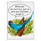 Ein zeichn eines lustig aussehenden, blauen Ringhalspapagei mit sommerlichem Blattwerk im Hintergrund. :) Kaufen Sie eine oder mehrere Grußkarten für Sie und Ihre Freunde am Ringhals!