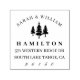 Die rustikale Rücksendeadresse Gummi Briefmarke aus holzgeschmücktem mit ihren Vornamen, geschwungen über ein Trio von Kiefern, mit Familienname und Rücksendeadresse Details darunter.