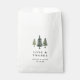 Rustikale Taschen mit schicker Gastgeschenk Hochzeit bedanken sich bei den Gästen im winterlichen Waldstil. Die Taschen sind mit einem Trio aus Kiefernbaum-Silhouetten in satten Jägergrün mit "Liebe und Dank" und Ihren Namen und Hochzeitstag. Entworfen, um unsere Hochzeitskollektion von Tall Pines zu ergänzen.