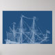 Blue Tall Segelschiff Blueprint Segelboot Masts Poster