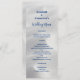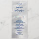 Hochzeitmenü Vorlage für einen Strand themed Empfang. Weißes Hintergrundbild mit marineblau-blauem Text. Der Menütitel befindet sich in einem handgeschriebenen Skript-Schriftart und die Erholung ist gedruckt. Die Braut und der Bräutigam stehen ganz oben, und die Menüauswahl sind in einem Absatz aufgelistet, um Ihre Veranstaltung leicht anpassen zu können. Wählen Sie einen beliebigen Papierstil aus, oder nutzen Sie die Sofortdownload-Option.