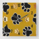 Tan and black paw print on gold background #2 quadratische wanduhr