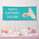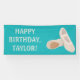Fügen Sie Ihre eigene Nachricht hinzu, um ein individuelles Banner für Geburtstagspartys und andere besondere Anlässe zu erstellen. Dieses Banner zeigt hellbeige und hellbeige Ballettschuhe vor einem aquamarinen oder türkisblauen Hintergrund.