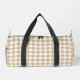 Travel in style with this Tan Beige White Gingham Plaid Duffle Bag. Featuring a classic gingham plaid pattern in soft tan, beige, and crisp white, this bag combines timeless design with practical functionality. Perfect for weekend getaways, gym sessions, or everyday carry, it offers ample space and durable construction while adding a touch of rustic, chic charm to your look. Elevate your travel accessories with this versatile, stylish duffle bag that blends classic plaid elegance with modern convenience.