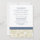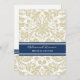 Spezielle Probe Abendessen Party Einladungen in modernen und eleganten dunkelmarineblau, taupe Sand braun und weiß chic und klassisch floralen Damast Vintagen Muster. Personalisieren Sie den Text, um eine einzigartige Einladung für Ihre Hochzeit Probe Abendessen. Kontaktieren Sie uns, um eine Farbänderung anzufordern. Erhältlich in vielen passenden Hochzeitsartikeln.
