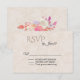 Elegante Hochzeitskarte RSVP in einem Bräunen und Elfenbein geblüht Damast Hintergrund. Die Rückseite der Karte wird von farbenfrohen, rätselhaften Blume geschmückt. Personalisieren Sie den gesamten Text für Ihren besonderen Tag. Matching Produkte sind erhältlich.