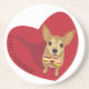 Tan Chihuahua mit einer Bogen-Krawatte im roten He Getränkeuntersetzer