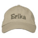 Ihr Name bestickt auf einem khaki tan Custom Baseball Hut / Baseball-Kappe. Text ist vollständig anpassbar. Dargestellt ist der bearbeitbare Name, Erika. Designed by 369MyName.