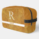 Tan Leather Textur Trim White Monogram Name Waschbeutel