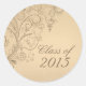 Dieser Rundaufkleber mit Abschluss hat ein hübsches, trendiges, braunes Design mit vielen skurrilen Blume auf der links Seite. Im Hintergrund ist ein sanftes, bräunliches Design. Rechts können Sie das Jahr des Abschlusses ganz einfach anpassen.