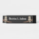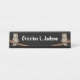 Dieser Schreibtisch oder die hängende Namensschild ist schwarz, mit zwei bräunlichen Eulen, die blaue Halsketten tragen und an jedem Ende hübsche Seiten haben. Passen Sie Ihren Namen mit der Vorlage an.