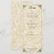 Eine Hochzeitsmenükarte mit schwarzem Text auf einem Hintergrund aus weißem Pergament.