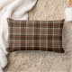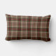 Das quadratische Kissen mit karierten, klassischen Farbtönen in Bräunen, Grün und Rot mit lila, Maronfarben und schwarzen Highlights. Das rechteckige Lendenwirbelkissen ist ebenfalls erhältlich.