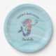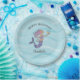 Niedliche lila Meerjungfrau und blaue Wellen schmücken diese Teller aus Papier. Passen Sie mit dem Namen Ihres Kindes auf!