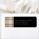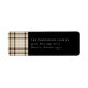 Tan und Schwarz Tartan karierte Muster, Rückgabeadresse Label.