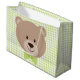 TAN TEDDY BEBAR MIT GRÜNEN BOW KRAWATTE & GINGHAM GROßE GESCHENKTÜTE