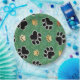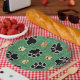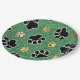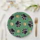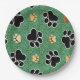 Tan und schwarze Pfote auf grünem Gras Pappteller