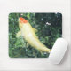 Koi, der Fischnahrung auf der Teichoberfläche füttert