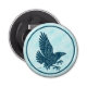 Ein schlichtes, blaues Silhouette-Bild eines lebhaften Raven (Corvus corax) im nordisch-keltischen Stil, überlagert auf einem verschneiten Hintergrund.