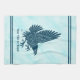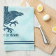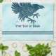 Ein schlichtes, blaues Silhouette-Bild eines lebhaften Raven (Corvus corax) im nordisch-keltischen Stil, überlagert auf einem verschneiten Hintergrund. Passen Sie Ihren eigenen Text an.