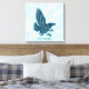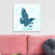 Ein schlichtes, blaues Silhouette-Bild eines lebhaften Raven (Corvus corax) im nordisch-keltischen Stil, überlagert auf einem verschneiten Hintergrund. Passen Sie Ihren eigenen Text an.