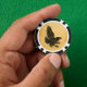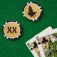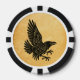 Ein einfaches Bild einer Silhouette von einem lebhaften Raben (Corvus corax, im Norse/keltischen Stil, in einem Kreis, überlagert auf einem alten Papier Hintergrund Bild, das ihm ein mittelalterliches Gefühl gibt. Anpassen durch Hinzufügen des Chip-Werts, des e-Chips oder eines anderen Textes auf der Rückseite.