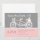 Vergnügungs-Design mit einem Blume gedeckten Tandemfahrrad. Ein dreigängiger Hochzeitstorte steht auf der Rückseite und zwei Liebesvögel mit Herz runden das Thema ab. Passen Sie Geschenke und Schreibwaren mit Ihrem eigenen personalisierten Text an. Auf T - Shirt, Taschen, Polterabend Einladungen, speichern Sie das Datum Ankündigungen, Porto, Hochzeitsplaner, Keepsakes und mehr! PinkInkArt Original!