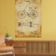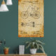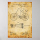 Eine alte Erfindung eines Tandem-Fahrrads, das 1890 patentiert wurde und für Wandkunst auf rustikalem Vintagem Hintergrund entworfen wurde.
