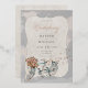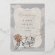 Niedliche und romantische Hochzeitseinladung mit glänzender Goldfolie aus Rose, mit einem Vintagen Tandemfahrrad in Aquarellfarbe und einem Blume-Korb.
