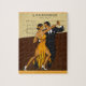 Vintages Anzeigenbild eines Paares, das den Tango mit Lied-Texten im Hintergrund tanzt