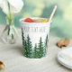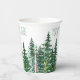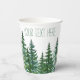 Tannenwald Hochzeitspapiertassen mit Aquarelltannenhintergrund im Freien. Sie können Text hinzufügen, um diese rustikalen Tannenwald Papiertassen zu personalisieren.