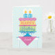 Eine Geburtstagskarte für Ihre 60-jährige Tante. "Happy Birthday" ist auf jeder Kuchenlage mit rosa dekorativem Eisen, das sie trennt. Ein subtiler Hintergrund aus Gelb und Blau verankert das Design. Helle Farben und ein mutiges Grafikdesign geben diesem Geburtstag ein festliches Gefühl. Sie können auch "Tante" ändern, um für jede einzelne zu personalisieren.