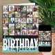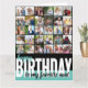 Erstellen Sie Ihre eigene große Geburtstagskarte. Die Fotovorlage ist für Sie bereit, 31 Ihrer Lieblingsfotos hinzuzufügen, von denen 30 in quadratischem / instagram Format in einer einfachen Rasterstil-Foto-Collage dargestellt werden und die Hauptsache ist in einem Frame-Portrait-Format auf der Innenseite. Die Vorderseite der Geburtstagskarte ist mit moderner überdimensionaler Typografie und Pinselskripten versehen. Es liest derzeit "Happy Geburtday to my favorit Tante" mit Farbblockstyling in aquamarin, schwarz und weiß. Sie können die personalisierte Formulierung auf der Vorderseite bearbeiten und auch den Gruß im Inneren anpassen.