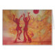 Ein sillouette eines Paares, des Mannes und der Frau, Tanz, ein Discoball, der von oben gehangen werden, die Rosen, die in der Farbe rosa und gelb sind, sind im Hintergrund, wenn die Blumenblätter herum wirbeln. Diese ausdrucksvolle und extrahierte Malerei gibt das Gefühl des Spaßes und der Feier. Aquarell und guache. Ich tat dies als Promo für Jazzmusik-Band eines Freunds.