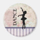 Ein niedlicher Magnet mit einer Silhouette einer Ballerina auf einem hübschen Hintergrund. Diese elegante Ballett-Tänzerin ist auf ihren Zehen stehend, en pointe mit ihren anmutig ausgestreckten Armen. Das Wort "Tanz" neben diesem eleganten Tänzer geschrieben. Der Hintergrund besteht aus einem schäbig Vintag aussehenden Muster mit Blume-Blüten. Der untere Teil des Designs hat Vintage Lavendelstreifen, die abwechselnd in dunklen und hellen Farben gehalten werden.