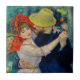 Keramik Tile mit Pierre-Auguste Renoirs Ölgemäldetanz im Bougival (1883). Eine schöne Frau in einem rosa Kleid und ein roter Hut tanzt mit einem hübschen Mann in einem blauen Anzug. Ein großartiges Geschenk für französische Kunstsammler und Impressionisten.