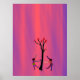 Zwei Kinder tanzen um einen blühenden Baum vor farbenprächtigem Hintergrund. Original digitale Malerei.