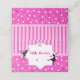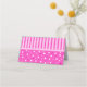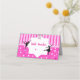 Tanzende Ballerina Silhouette Geburtstagsfeier Platzkarte, Ballerina Silhouette auf einem hellrosa und fuchsienfarbenen Hintergrund mit weißen Polka Punkten und rosa Herzen. Oben eine schöne Schuhillustrierung mit Ballerina.