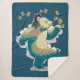 Ein Bär mit Kopfhörer tanzt fröhlich mit farbenfrohen musikalischen Noten um ihn herum.