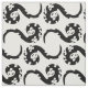 Dieses elegante und dennoch spielerische Design aus Tierstoffen zeichnet sich durch ein asiatisches Motiv aus, das abstrakte Muster fröhlicher Tanzdrachen in einem schlichten Schwarz-Weiß-Farbschema darstellt.