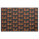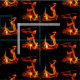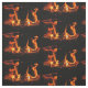 Dieser Gewebeentwurf der feinen Kunst stellt ein wiederholendes abstraktes Muster der Energie des Feuers in einem hölzernen brennenden Ofen dar. Die Orange, das Gold und die gelben Flammen erscheinen als frohe Tanzencharaktere. Sie werden durch einen schwarzen Hintergrund ausgelöst.