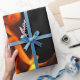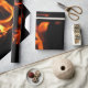 Dieses Packpapier stellt die Energie des Feuers in einem hölzernen brennenden Ofen dar. Die Orange, das Gold und die gelben Flammen erscheinen als frohe Tanzencharaktere. Sie werden durch einen schwarzen Hintergrund ausgelöst.