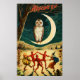 Ein schönes Vintage Poster mit Teufel, Hexe und Kürbischarakter, die unter dem Mond tanzen und Eule.
