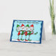 Vier lustige Weihnachtselfe kleideten im Rot- und Grüntanz wie dem Rockettes an. Geschrieben über ihre Köpfe, "wir wünschen Ihnen frohen Weihnachten!" zusammen mit musikalischen Anmerkungen. Addieren Sie Ihre eigenen Fotos, um die Gesichter auszufüllen, um den Spaß abzuschließen.