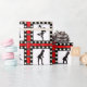 4 verschiedene Silhouetten Cabaret-Tänzer, die in einem hellen Rahmen mit rotem Backstein auf Geschenkpapier gedruckt wurden.