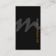Diese elegante Script-Tänzerkarte bietet ein großes, dunkelgraues Skript-Monogramm mitten in der Karte auf schwarzem Hintergrund. Ihr Name und Titel erscheinen vertikal auf der rechten Seite der Karte in orange und weiß. Auf der Rückseite der Karte erscheinen Ihre anderen Kontaktdaten einschließlich Ihres Firmenlogos. Auf der Rückseite der Karte befindet sich auch ein kleinerer Monogramm-Buchstabe im selben Skript-Schriftart. Ideal für Künstler, Unterhaltung, Showbusiness, Performance, Performers, Talentthemen.